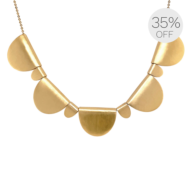 An alternating pattern of large and small hand-carved and cast vermeil flap pendants that move freely on a delicate adjustable length 16-18" cable chain.